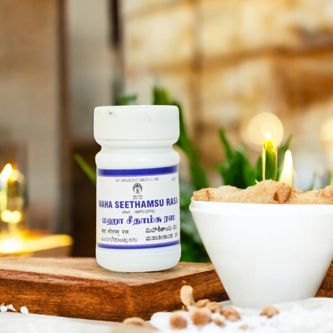 By balancing the tridoshas Vata, Pitta, and Kapha – Maha Seethamsu Rasa (Tablets) restores harmony within the body, promoting overall well-being.